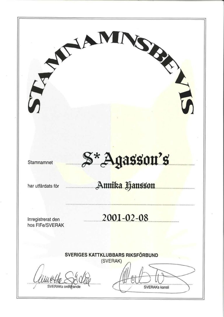 Vi som driver uppfödningen heter Annika och Magnus. Vi registrerade vårt stamnamn redan 2001 då vi började föda upp Ocicats. Efter många års uppehåll beslöt vi att återuppta kattaveln och föll då för den underbara rasen Maine Coon.